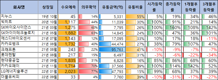 유통금액이 5,000억원을 넘는 경우 기관의 수요예측결과가 중요한 변수가 될 것 같습니다.
